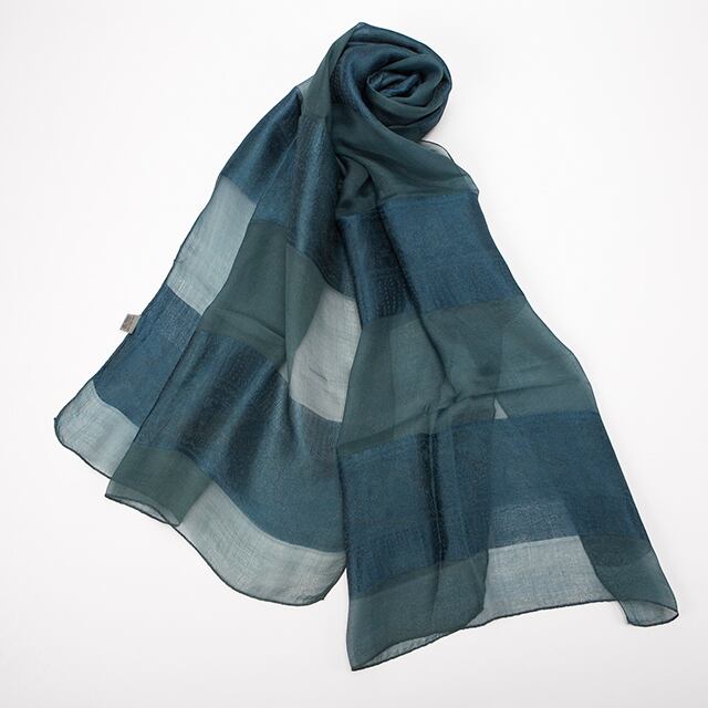 丁寧に手で染められ、済州島の風になびかせる行程を何度も繰り返して作られた、切り替えの色の変化が美しいシルク100%のスカーフです。